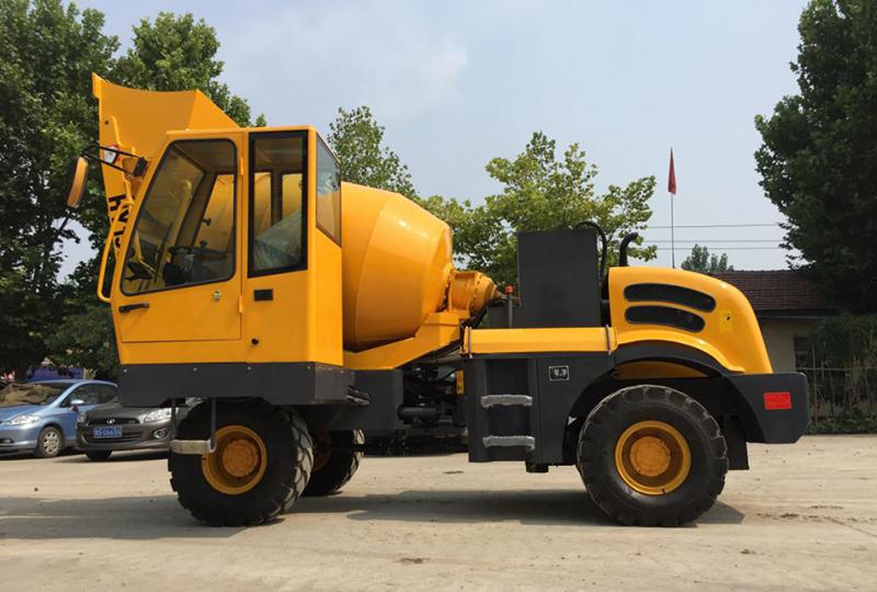 El camión mezclador está compuesto por el chasis, el sistema de transmisión, el sistema hidráulico, la estructura, el tanque de mezclado, el dispositivo de carga y descarga, el suministro de agua, el sistema operativo, la escalera de acceso, etc. La parte delantera del tanque mezclador está conectado con el reductor del frente de la estructura, y la parte trasera está apoyada en dos ruedas instaladas en la parte trasera de la estructura.