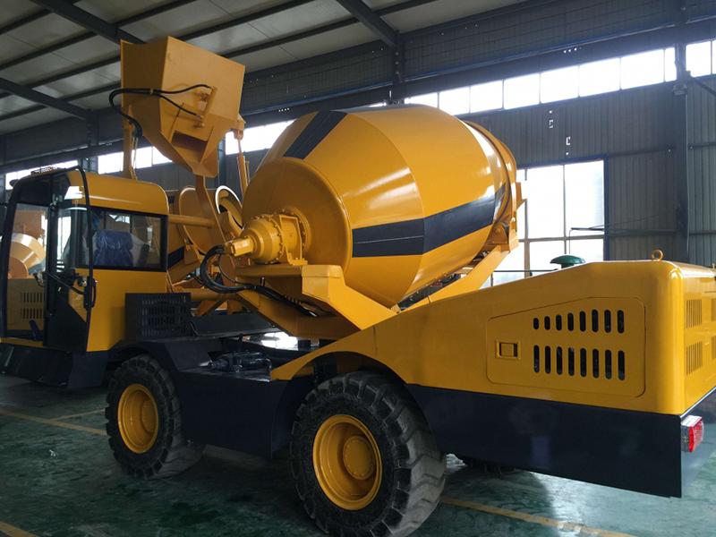 El camión mezclador está compuesto por el chasis, el sistema de transmisión, el sistema hidráulico, la estructura, el tanque de mezclado, el dispositivo de carga y descarga, el suministro de agua, el sistema operativo, la escalera de acceso, etc. La parte delantera del tanque mezclador está conectado con el reductor del frente de la estructura, y la parte trasera está apoyada en dos ruedas instaladas en la parte trasera de la estructura.