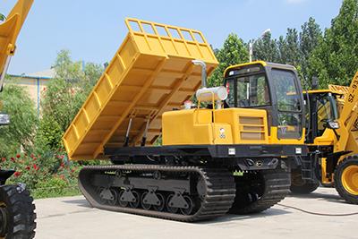 El dumper volquete sobre orugas de goma tiene una capacidad de carga de 6000kg y está equipado con un motor Cummings de 130hp con una velocidad de marcha de 7km/h. Gracias a sus orugas de goma aumenta la amortiguación del vehículo en gran manera, lo que reduce el daño que produce el peso de los materiales al suelo de manera considerable. Asimismo, es muy adecuada para todo tipo de rutas poco transitables, con barro o hielo.