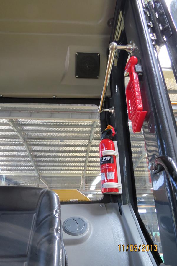 7. La espaciosa cabina vidriada provee el mejor ambiente de trabajo para el conductor, con matafuegos y martillo de seguridad incorporados.